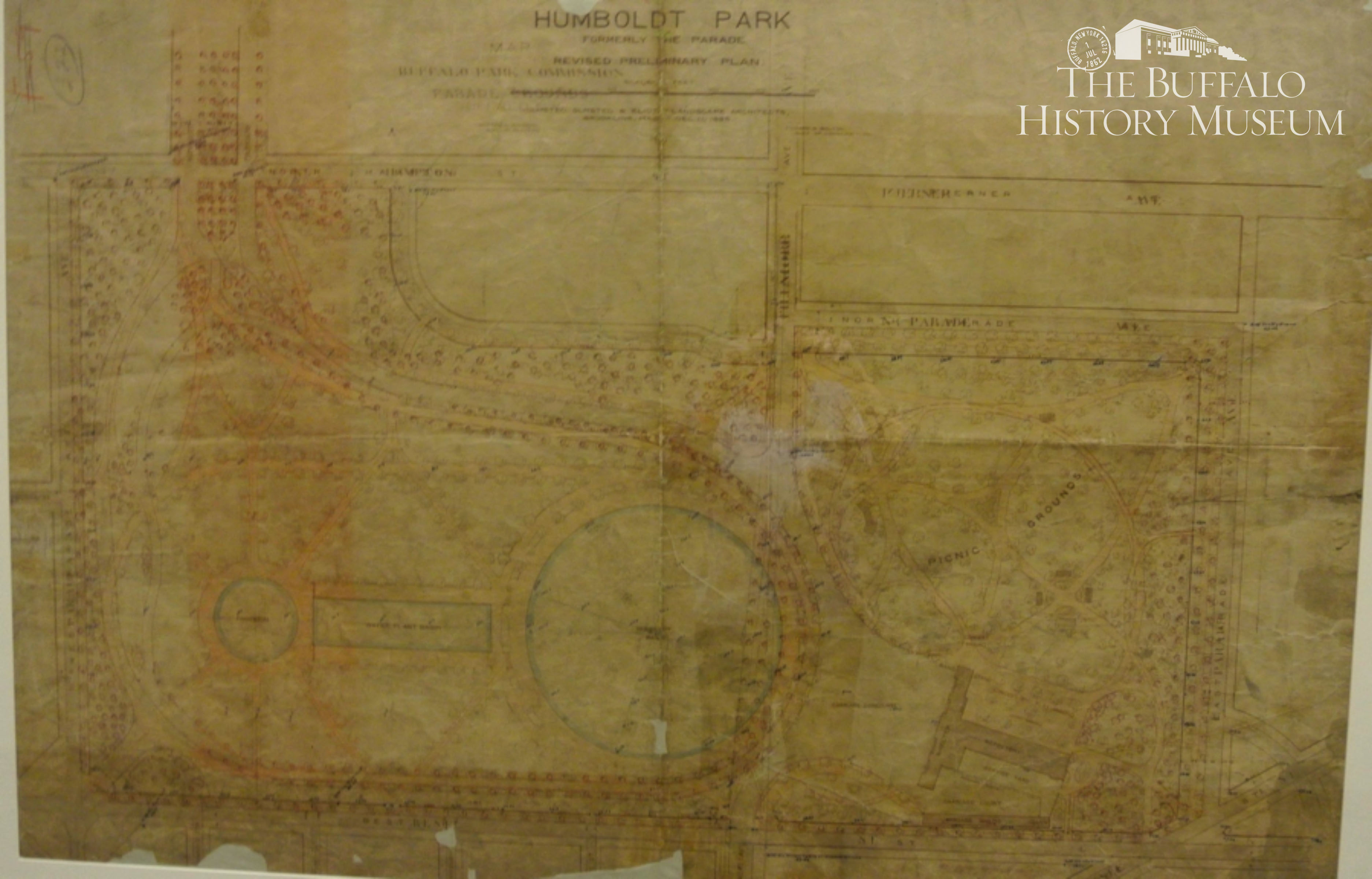 Humboldt Park (formerly the Parade): revised preliminary plan. Olmsted, Olmsted and Eliot, Brookline, Mass., December 11, 1895. Collection of the Buffalo History Museum, gift of the City of Buffalo